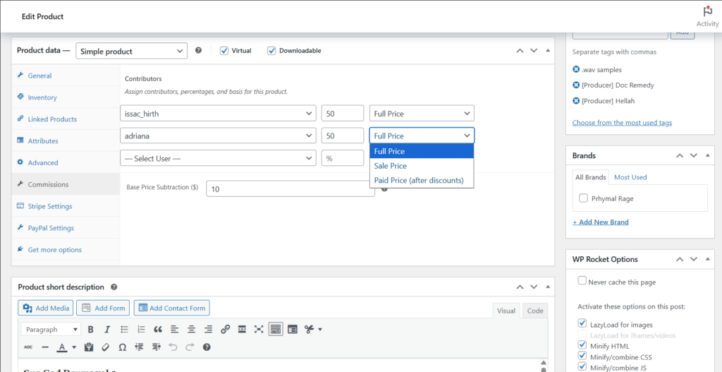 Set different commission % per product depending on who created it.